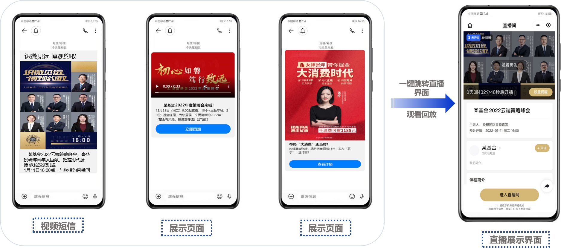 在“万物皆可直播”的当下,基金直播有效丰富了基金营销的方式,具有强大的开展潜力和生命力。基于此,凯发k8官网科技5G消息解决方案对消息的交互能力进行全新的升级,以提高基金直播间的曝光。